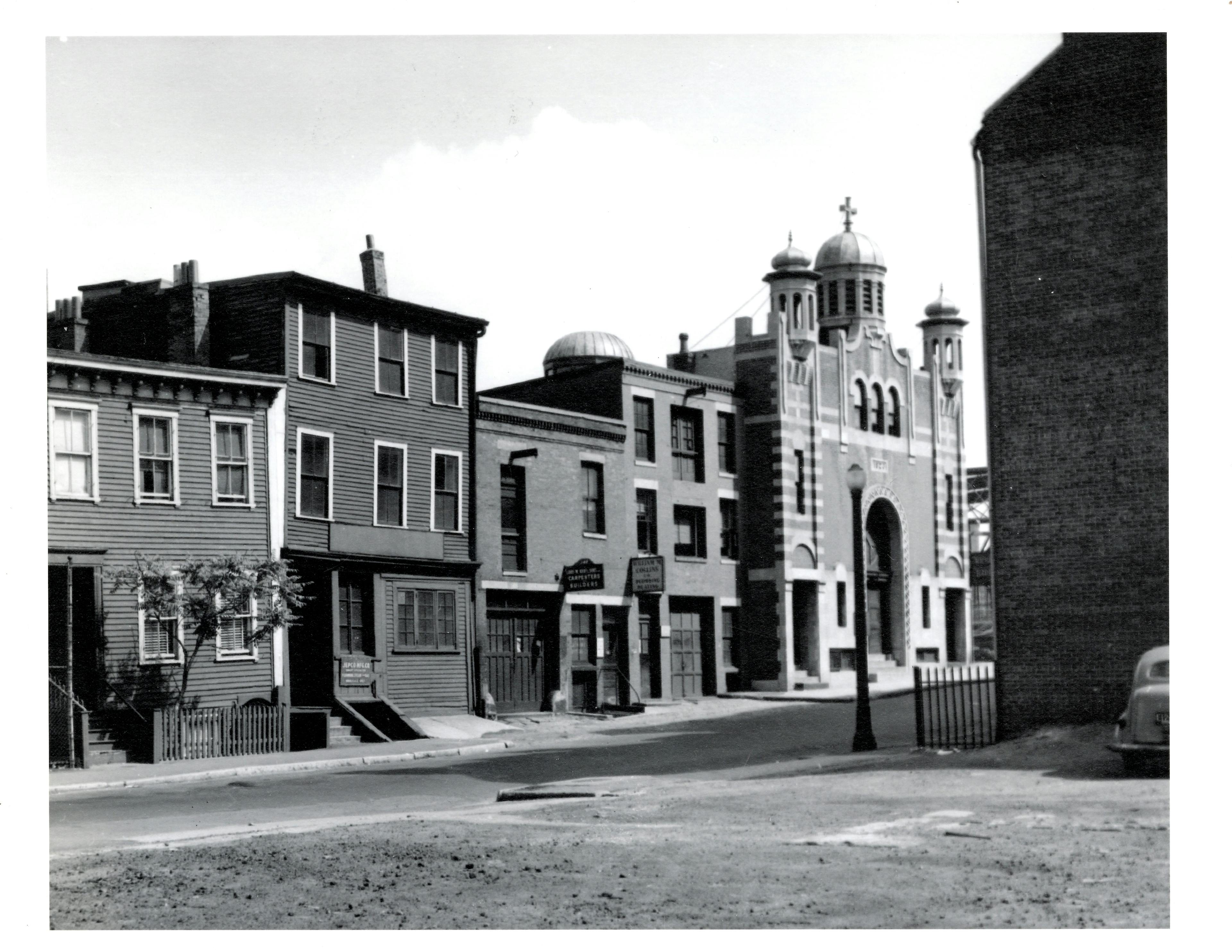 St. George Syrian Orthodox Church, formerly at 154 Tyler Street, which stood there from 1923 to 1953. (Photo courtesy of Little Syria Project)