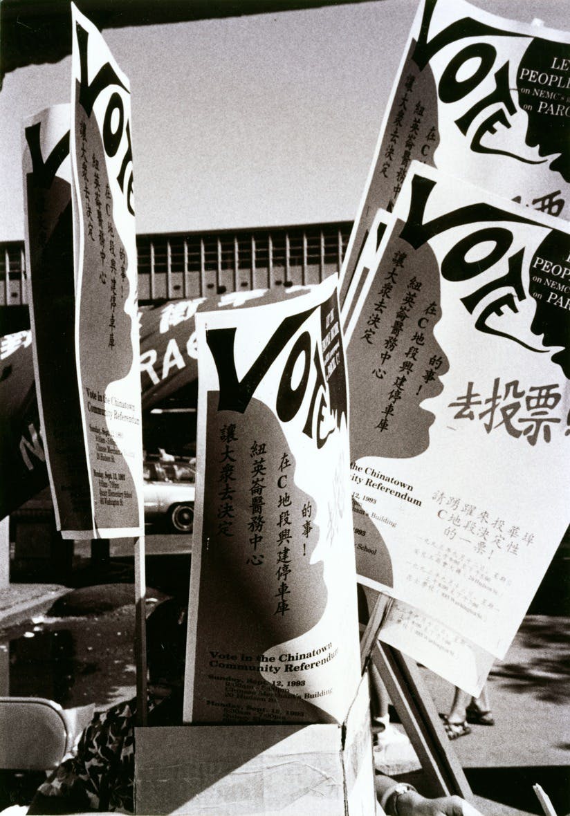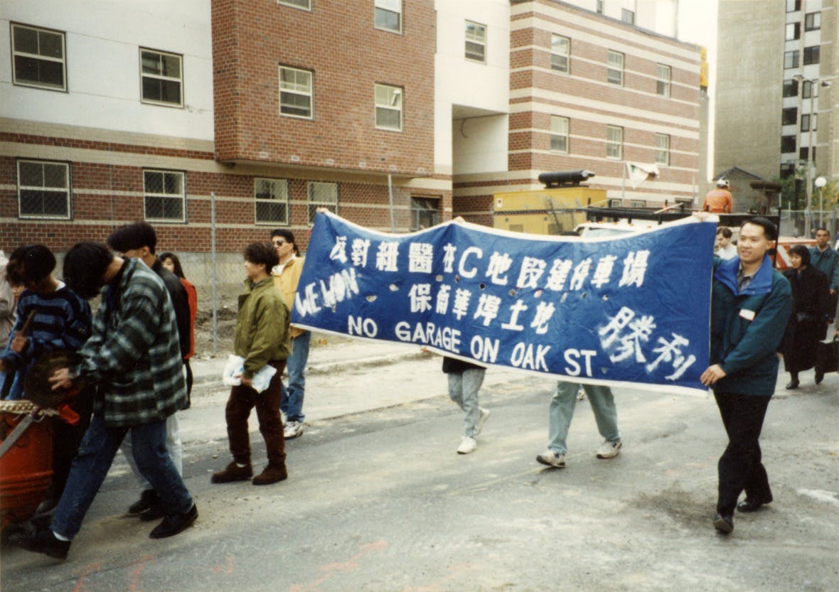For over a decade, the community opposed three different hospital proposals to build a parking garage on Parcel C. In 1993, the Coalition to Protect Parcel C for Chinatown organized an independent referendum in which community members rejected the latest garage proposal by a large margin of 1692:42. Despite the overwhelming sentiment against the garage, it took eighteen months of protests and petitions for the Boston Redevelopment Authority to designate the parcel for community-oriented development.